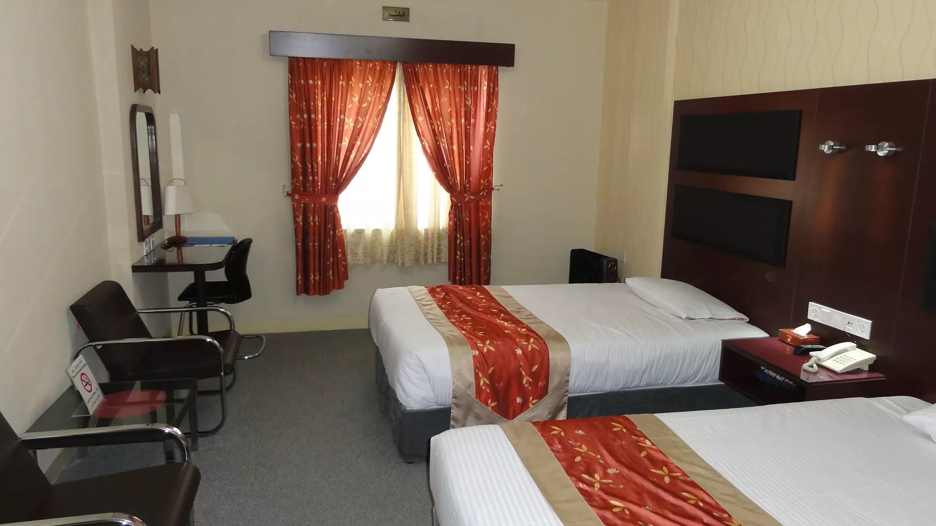 اتاق دو تخته : در این اتاقها یک تخت دونفره قرار دارد و عموما زوجها این اتاق را برای اقامت خود انتخاب میکنند.. اتاق شامل سرویس بهداشتی حمام یخچال می باشد و ظرفیت این اتاق دو نفر تعریف شده است.