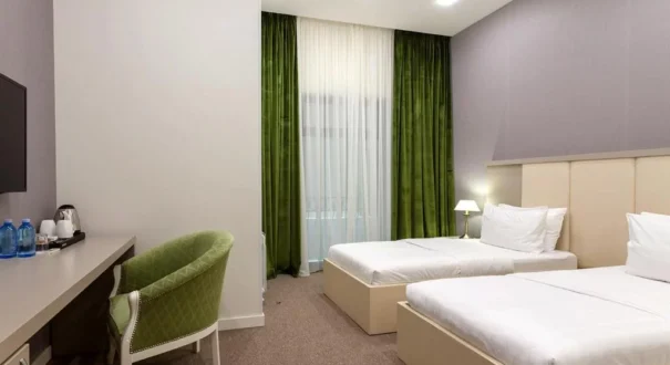 - اتاقهای راحت و مجهز با تلویزیون، تهویه مطبوع، یخچال، و سشوار.
