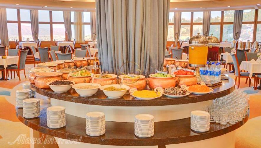 4- رستوران پانورامیک: رستوران پانورامیک نیز دارای منویی باز از انواع غذاهای فست فود است که در صورت تمایل میتوانید برای مراجعه به این رستوران به طبقه سیزدهم مراجعه کرده و در کنار لذت بردن از طعم دلنشین غذا، شاهد نمایی زیبا از شهر شیراز و طبیعت کوهها باشید.