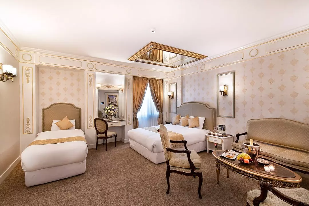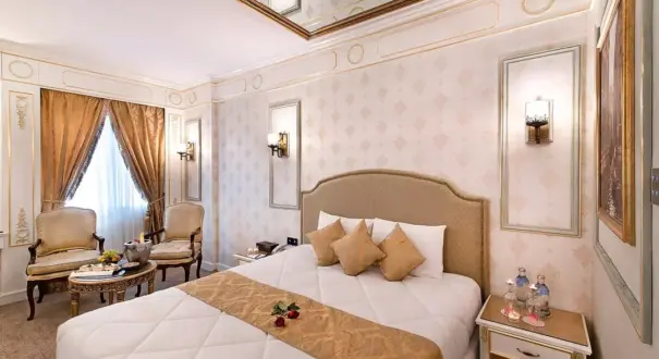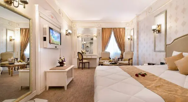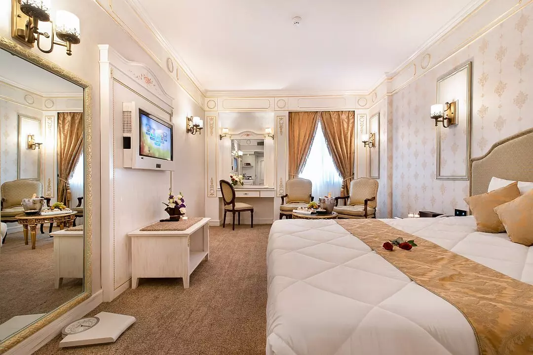 هتل بین المللی قصر مشهد یکی از هتلهای ۵ ستاره ممتاز در این شهر است که سابقه بسیار زیادی در عرصه هتلداری داشته و از روزهای قدیم محل اقامت زائران ایرانی و خارجی بوده است. این هتل لوکس و زیبا که فاصله بسیار کمی با حرم امام رضا (ع)دارد، در خیابان معروف امام رضا واقع شده است و با کمتر از ۱۰ دقیقه پیادهروی میتوان به یکی از ورودیهای حرم رسید. این هتل در سال ۱۳۵۶ فعالیت خود را آغاز کرده و در سال ۱۳۹۶ به منظور ارتقا سطح کیفی خدمات و امکاناتاش بازسازی شده استاقامت در هتل بینالمللی قصر مشهد دقیقا مثل اقامت در یک قصر واقعی است. این هتل با طیف گستردهای از خدمات و امکانات از مهمانان خود میزبانی میکند. هتل دارای چندین رستوران، فروشگاه، سالن زیبایی، سونا، باشگاه و اتاق جلسه است. این هتل برای گشت و گذار راحت مهمانان خدمات تاکسی سرویس ۲۴ ساعته و کرایه خودرو ارائه میدهد و برای مهمانان ویژه خدمات CIP در نظر گرفته است. هتل بینالمللی قصر دارای پارکینگ شبانهروزی با ظرفیت ۱۰۰ خودرو است و مهمانان میتوانند به صورت رایگان از آن و کارواش پارکینگ استفاده کنند. اینترنت رایگان نیز به صورت روزانه و با حجم ۳ گیگابایت در اختیار مهمانان هتل قرار میگیرد. ناگفته نماند که امکانات هتل Ghasr Hotel برای استفاده افراد توانجو نیز بهینه شدهاند.هتل بینالمللی قصر در ۱۲ طبقه ساخته شده است و دارای ۲۲۰ واحد اقامتی است که در قالب اتاق، سوئیت و آپارتمان ارائه میشوند. اتاقهای این هتل بزرگ و وسیع هستند و با ظرافتی بسیار خاص طراحی شده و با مبلمانی شیک و زیبا به سبک تلفیقی مدرن و کلاسیک دکور شدهاند. اتاقهای فرست کلاس، پرزیدنت و ویژه آن مثل هانی مون رومانتیک، دبل هخامنشی، دبل قاجار، پرزیدنت رویال، دبل رویال لاکچری جزو بهترین و لوکسترین واحدهای هتل به حساب میآیند. آپارتمانهای این هتل نیز یک خوابه و یا دو خوابه هستند. در تمامی این واحدها امکاناتی نظیر تهویه مطبوع، تلویزیون، سرویس چایخوری، تلفن سانترال، صندوق امانت رایگان، کمد، مینیبار، میز کار و مینی یخچال قرار داده شده و برخی از حمامهای آن دارای وان هستند. لازم به ذکر است که میتوان در تلویزیونهای این هتل کانالهای ایرانی و بینالمللی را تماشا کرد.