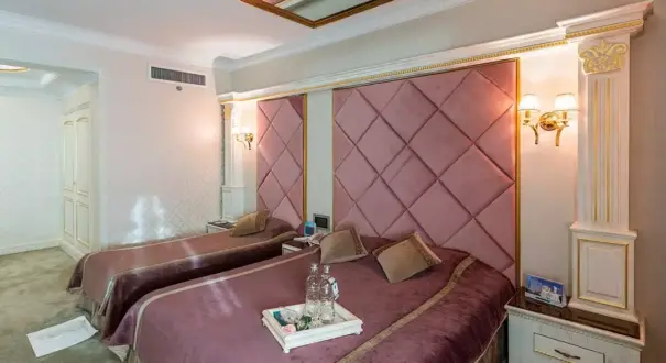 دستورالعمل ها ارائه مدارک شناسایی معتبر (شناسنامه و کارت ملی) برای همه افراد و مدارک محرمیت (شناسنامه) برای زوجین الزامی است پذیرش صیغه نامه معتبر زوجین ایرانی غیر بومی با مهر برجسته و ارائه شناسنامه و کارت ملی زوجین (خانم و آقا) امکان پذیر است نرخ اقامت میهمان غیرایرانی متفاوت است. به منظور استعلام دقیق نرخ لطفا با پشتیبانی تماس حاصل فرمایید. مدارک مورد نیاز برای پذیرش میهمان خارجی شامل اصل پاسپورت به همراه ویزا و مهر ورود به ایران با تاریخ اعتبار و انقضا میباشد امکان تغییر نام برای رزرو ثبت شده فراهم نمیباشد و اتاق فقط به شخصی که رزرو به نام ایشان باشد تحویل میگردد. در حین ثبت رزرو مشخصات تمامی میهمانان باید به درستی درج گردد. حداقل سن جهت اخذ اتاق بصورت انفرادی ۱۸ سال الزامی میباشد. تمامی افراد بزرگسال داخل یک اتاق می بایست محرم باشند. پذیرش ملیت ایرانی و خارجی در یک اتاق/ سوییت/کلبه/ آپارتمان/ ویلا به شرط احراز محرمیت است. مجموعه از پذیرش حیوانات خانگی معذور است. طبق قوانین هتل در صورت نقص مدارک شناسایی و عدم احراز هویت یا عدم رعایت هر یک از قوانین ذکر شده امکان پذیرش وجود ندارد و هزینه پرداخت شده مسترد نمی گردد. در این خصوص مسئولیتی متوجه هتل یا این شرکت نیست. دستورالعمل های ویژه به اطلاع مهمانان گرامی می رساند این هتل دارای استقبال رایگان فرودگاهی و راه آهن می باشد. به این منظور خواهشمندیم در زمان رزرو، شماره موبابل مهمان و اطلاعات پرواز (شماره پرواز، ساعت حرکت، مبدا، شرکت هواپیمایی) و یا قطار را در قسمت توضیحات مشخصات ثبت نمایید؛ یا اینکه تا حداکثر 24 ساعت قبل از ورود به هتل، اطلاعات پرواز، قطار و شماره همراه مهمان را به این شرکت اعلام نمایید. لازم به ذکر است که در صورت عدم اطلاع رسانی خدمات ترانسفر ارائه نمی گردد. پذیرش خانم مجرد در این هتل پذیرش خانم مجرد و تنها بالای 18 سال و غیر بومی، با ارائه مدارک شناسایی معتبر شامل شناسنامه عکس دار و کارت ملی هوشمند امکان پذیر می باشد. هتل از پذیرش خانم مجرد و تنها بومی معذور است. قوانین کودک و نوزاد اقامت کودک زیر 2 سال در صورت عدم استفاده از سرویس رایگان می باشد. اقامت کودک با بازه سنی 2 تا 6 سال در صورت عدم استفاده از سرویس نیم بها محاسبه می شود. هزینه اقامت کودک بالای 6 سال کامل محاسبه می شود. لازم به ذکر است که اقامت رایگان و نیم بها فقط برای یک کودک در نظر گرفته می شود.