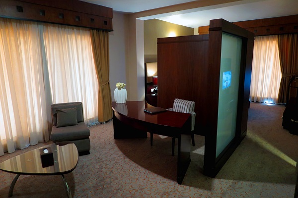 * لابی: لابی بزرگ و مجلل هتل با سقف بلند و نورپردازی زیبا، فضایی باشکوه و دلنشین را برای استقبال از مهمانان ایجاد میکند.