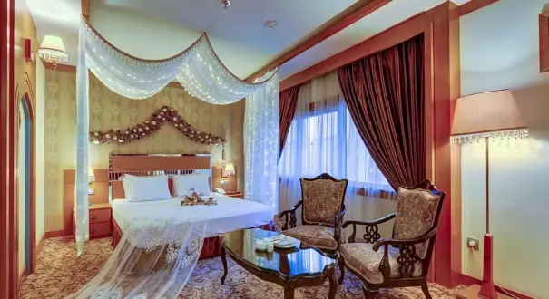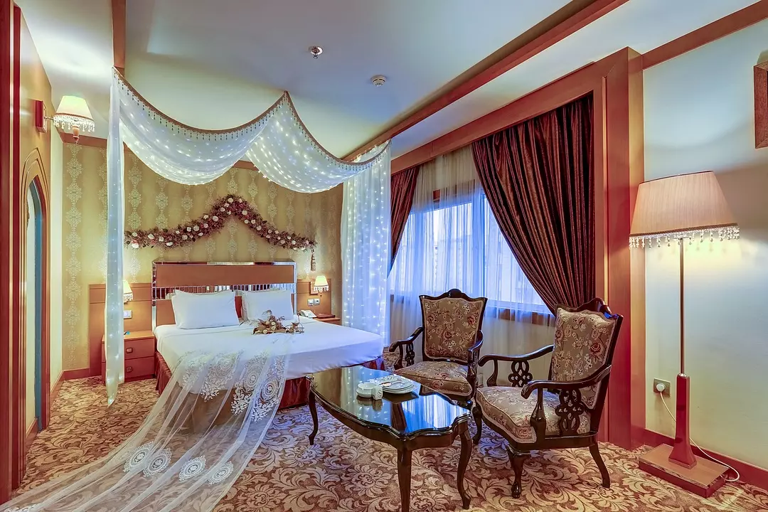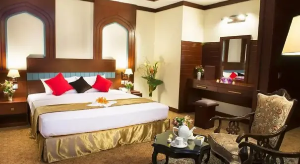 دستورالعمل ها ارائه مدارک شناسایی معتبر (شناسنامه و کارت ملی) برای همه افراد و مدارک محرمیت (شناسنامه) برای زوجین الزامی است پذیرش صیغه نامه معتبر زوجین ایرانی با مهر برجسته و ارائه شناسنامه و کارت ملی زوجین (خانم و آقا) امکان پذیر است نرخ اقامت میهمان غیرایرانی متفاوت است. به منظور استعلام دقیق نرخ لطفا با پشتیبانی تماس حاصل فرمایید. مدارک مورد نیاز برای پذیرش میهمان خارجی شامل اصل پاسپورت به همراه ویزا و مهر ورود به ایران با تاریخ اعتبار و انقضا میباشد امکان تغییر نام برای رزرو ثبت شده فراهم نمیباشد و اتاق فقط به شخصی که رزرو به نام ایشان باشد تحویل میگردد. در حین ثبت رزرو مشخصات تمامی میهمانان باید به درستی درج گردد. حداقل سن جهت اخذ اتاق بصورت انفرادی ۱۸ سال الزامی میباشد. تمامی افراد بزرگسال داخل یک اتاق می بایست محرم باشند. پذیرش ملیت ایرانی و خارجی در یک اتاق/ سوییت/کلبه/ آپارتمان/ ویلا به شرط احراز محرمیت است. مجموعه از پذیرش حیوانات خانگی معذور است. طبق قوانین هتل در صورت نقص مدارک شناسایی و عدم احراز هویت یا عدم رعایت هر یک از قوانین ذکر شده امکان پذیرش وجود ندارد و هزینه پرداخت شده مسترد نمی گردد. در این خصوص مسئولیتی متوجه هتل یا این شرکت نیست. دستورالعمل های ویژه به اطلاع مهمانان گرامی می رساند این هتل دارای استقبال و بدرقه رایگان فرودگاهی و راه آهن (فقط بدرقه) می باشد. به این منظور خواهشمندیم در زمان رزرو، شماره موبابل مهمان و اطلاعات پرواز (شماره پرواز، ساعت حرکت، مبدا، شرکت هواپیمایی) را در قسمت توضیحات مشخصات پرواز ثبت نمایید؛ یا اینکه تا حداکثر 24 ساعت قبل از ورود به هتل، اطلاعات پرواز و شماره همراه مهمان را به این شرکت اعلام نمایید. لازم به ذکر است که در صورت عدم اطلاع رسانی خدمات ترانسفر ارائه نمی گردد. قابل توجه میهمانان گرامی، خدمات ترانسفر هتل فقط برای پروازهای داخلی و میهمانان ایرانی انجام می پذیرد. خدمات ترانسفر فرودگاهی و راه آهن در بازه زمانی 7 الی 21 انجام می پذیرد. خارج از این ساعات خدمات ترانسفر انجام نمی پذیرد. در ایام تعطیلات و پیک، به دلیل مسدود بودن مسیر های منتهی به حرم، هتل از ارائه خدمات ترانسفر معذور میباشد. پذیرش خانم مجرد در این هتل پذیرش خانم مجرد و تنها بالای 18 سال و غیر بومی، با ارائه مدارک شناسایی معتبر شامل شناسنامه عکس دار و کارت ملی هوشمند امکان پذیر می باشد. هتل از پذیرش خانم مجرد و تنها بومی معذور است. قوانین کودک و نوزاد اقامت کودک زیر 2 سال در صورت عدم استفاده از سرویس رایگان می باشد. اقامت کودک با بازه سنی 2 تا 6 سال در صورت عدم استفاده از سرویس نیم بها محاسبه می شود. هزینه اقامت کودک بالای 6 سال کامل محاسبه می شود. لازم به ذکر است که اقامت رایگان یا نیم بها فقط برای یک کودک در نظر گرفته می شود.