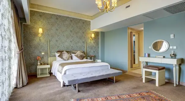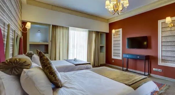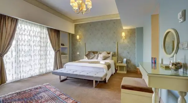 دستورالعمل ها ارائه مدارک شناسایی معتبر (شناسنامه و کارت ملی) برای همه افراد و مدارک محرمیت (شناسنامه) برای زوجین الزامی است پذیرش صیغه نامه معتبر زوجین ایرانی غیر بومی با مهر برجسته و ارائه شناسنامه و کارت ملی زوجین (خانم و آقا) امکان پذیر است نرخ اقامت میهمان غیرایرانی متفاوت است. به منظور استعلام دقیق نرخ لطفا با پشتیبانی تماس حاصل فرمایید. مدارک مورد نیاز برای پذیرش میهمان خارجی شامل اصل پاسپورت به همراه ویزا و مهر ورود به ایران با تاریخ اعتبار و انقضا میباشد امکان تغییر نام برای رزرو ثبت شده فراهم نمیباشد و اتاق فقط به شخصی که رزرو به نام ایشان باشد تحویل میگردد. در حین ثبت رزرو مشخصات تمامی میهمانان باید به درستی درج گردد. حداقل سن جهت اخذ اتاق بصورت انفرادی ۱۸ سال الزامی میباشد. تمامی افراد بزرگسال داخل یک اتاق می بایست محرم باشند. پذیرش ملیت ایرانی و خارجی در یک اتاق/ سوییت/کلبه/ آپارتمان/ ویلا به شرط احراز محرمیت است. مجموعه از پذیرش حیوانات خانگی معذور است. طبق قوانین هتل در صورت نقص مدارک شناسایی و عدم احراز هویت یا عدم رعایت هر یک از قوانین ذکر شده امکان پذیرش وجود ندارد و هزینه پرداخت شده مسترد نمی گردد. در این خصوص مسئولیتی متوجه هتل یا این شرکت نیست. پذیرش خانم مجرد در این هتل پذیرش خانم مجرد و تنها بالای 18 سال و غیر بومی، با ارائه مدارک شناسایی معتبر شامل شناسنامه عکس دار و کارت ملی هوشمند امکان پذیر می باشد. هتل از پذیرش خانم مجرد و تنها بومی معذور است. قوانین کودک و نوزاد اقامت کودک زیر 3 سال در صورت عدم استفاده از سرویس رایگان می باشد. اقامت کودک با بازه سنی 3 تا 7 سال در صورت عدم استفاده از سرویس نیم بها محاسبه می شود. هزینه اقامت کودک بالای 7 سال کامل محاسبه می شود.