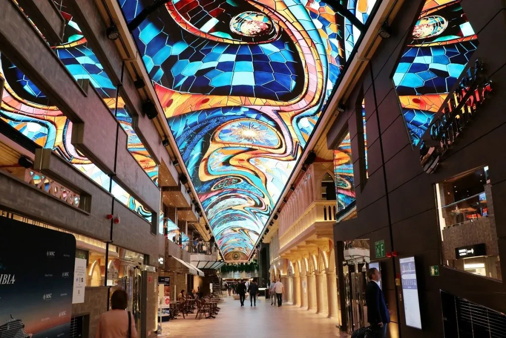 • گالری داخلی (Galleria Euribia) — یکی از طولانی‌ترین گنبدهای LED در دریا — که محلی برای خرید، رستوران‌ها و لحظات اجتماعی می‌باشد.