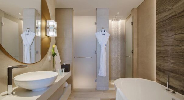 Al Bandar Rotana یک هتل فوقالعاده مدرن و خیرهکننده با موقعیتی عالی در کنار آب در قلب اصلی شهر است. ایده آل برای مسافران تجاری و تفریحی، ملک پنج ستاره زیبا، که در لبه نهر دبی واقع شده است، نزدیک به چندین جاذبه از جمله باشگاه گلف و قایق بادبانی نهر دبی، دلفیناریوم دبی در کریک پارک و توسعه جدید Rise Dubai Creek Harbor است. یک مرکز سرگرمی که میزبان موسیقی زنده، ست های دی جی، نمایش فیلم و غذاهای غیر معمول غذاخوری است. همه 190 اتاق و سوئیت دارای چشماندازهای خیرهکننده از شهر یا نهر هستند، مبلهای شیک و دارای جدیدترین امکانات و فناوریهای داخل اتاق هستند. گزینهها از اتاقهای استاندارد جادار گرفته تا سوئیتهای قصری متفاوت است، بنابراین چه به تنهایی یا با خانواده سفر کنید، در این پناهگاه کنار نهر احساس راحتی در خانه خواهید کرد. اتاقها و سوئیتهای باشگاه روتانا نیز در دسترس هستند و مزایای بیشتری از دسترسی به سالن تا خدمات شخصیشده را ارائه میدهند. پنج مکان ناهار خوری، تجربیات غذا شناسی جدیدی را به نهر دبی معرفی می کنند، از میخانه غذاخوری مورگان، تنها مفهوم غذاخوری در این منطقه، تا رستوران ایتالیایی Gusto، که غذاهای اصیل فصلی سرو می کند. مهمانان همچنین میتوانند یک مهمانی آشپزی را در رستوران بینالمللی Salt & Pepper تجربه کنند، از نوشیدنی گرم یا میانوعده در سالن شیک وانیلی لابی لذت ببرند، برای صرف غذا در فضای باز به سالن The Deck Pool بروید، یا از میان اتاقهای وسیع انتخاب کنید. منوی غذاخوری کلاب روتانا لانژ نیز نوشیدنی ها و وعده های غذایی سبک سرو می کند. همه اوت لت ها هر کدام دارای یک تراس خیره کننده مشرف به نهر دبی و افق دیدنی دبی هستند. بدن و ذهن خود را در باشگاه تناسب اندام و تناسب اندام بادی لاین خوب نگه دارید، جایی که امکانات مدرن شامل سالن بدنسازی مدرن با مناطق تمرین قلب و عروق و وزنه برداری آزاد، استخر و سونا روباز، اتاق بخار و ماساژ است. شش اتاق جلسه با نور طبیعی روز به مدیران کسب و کار جدیدترین فناوری و تجهیزات صوتی بصری را ارائه میدهند و تضمین میکنند که رویدادها بدون مشکل برگزار میشوند. بندر الروتانا چند دقیقه از طریق جاده از فرودگاه بین المللی دبی، مرکز تجارت جهانی دبی و مراکز خرید و بازارهای اصلی فاصله دارد. منطقه دیپلماتیک دبی، محل سفارتخانه های اصلی نیز به هتل نزدیک است.