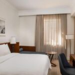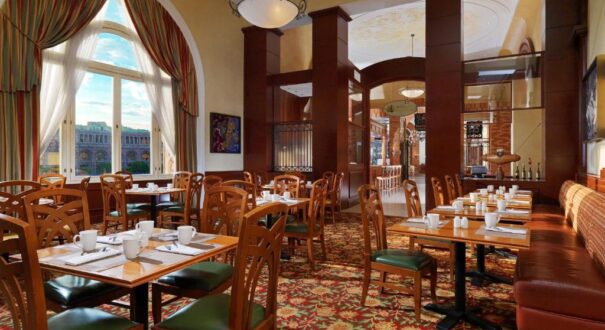 هتل ماریوت، صبحانه خوشمزه در ام-کلاب و یک کافه شگفتانگیز در فضای باز با منظره میدان جمهوری ارائه میدهد.