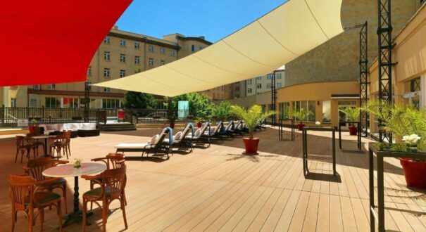 یک باشگاه ورزشی مدرن، مهمانان را به تناسب اندام دعوت میکند. استخر روباز فصلی، مکانی ایدهآل برای استراحت پس از یک روز پرمشغله است.
