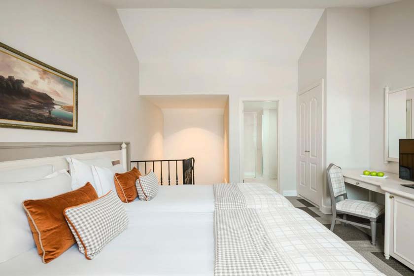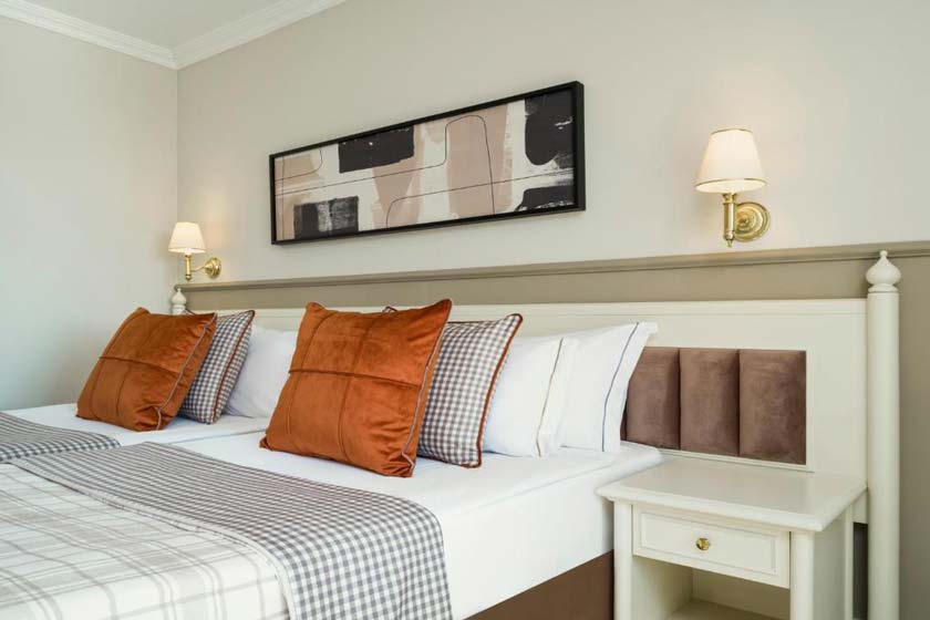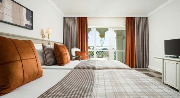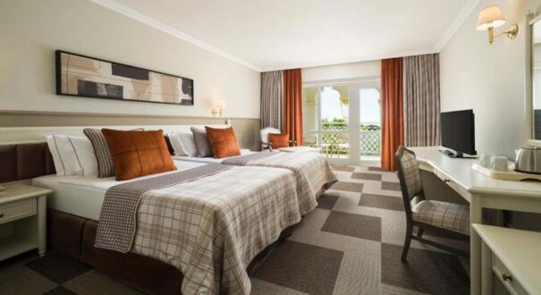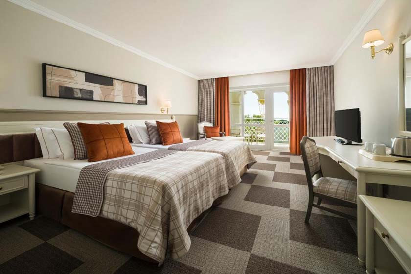 هتل کرملین پالاس آنتالیا (Kremlin Palace) یکی از هتلهای لوکس ۵ ستاره منطقه لارا است. در طراحی این هتل از معماری کاخ کرملین روسیه الهام گرفته شده است و اقامت در آن فرصتی برای تجربه زندگی سزارهای روسیه را برایتان به ارمغان میآورد. هتل ساحل اختصاصی هم دارد و میتواند گزینه خوبی برای گذراندن تعطیلات تابستانی باشد. این هتل بزرگ ۴ طبقه و در مجموع ۸۷۴ اتاق و سوئیت دارد که پنجره آنها رو به باغهای سرسبز اطراف باز میشود. دیوار واحدها عایق صوتی است و این امر، باعث میشود آرامش شما با سروصدای بیرون از اتاق به هم نریزد. امکاناتی مثل مینیبار، تهویه مطبوع، تلویزیون و چایساز یا قهوهساز برای رفاه حال مهمانان در نظر گرفته شده است. حمام اختصاصی واحدها نیز مجهز به دوش، سرویس بهداشتی فرنگی، سشوار و لوازم بهداشتی است.
