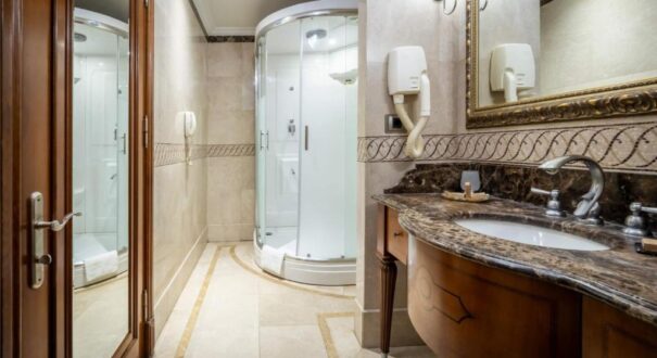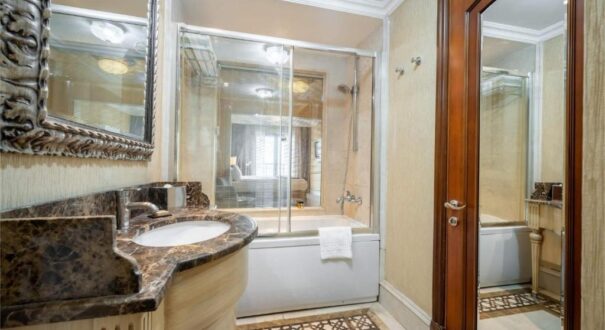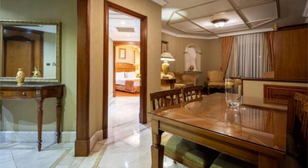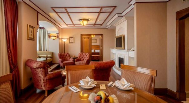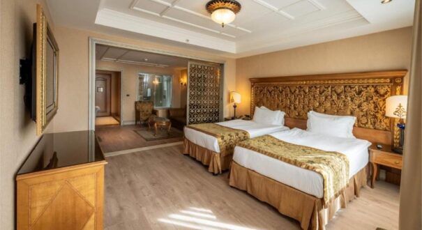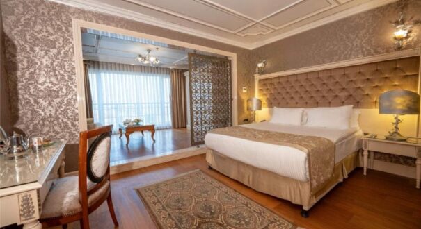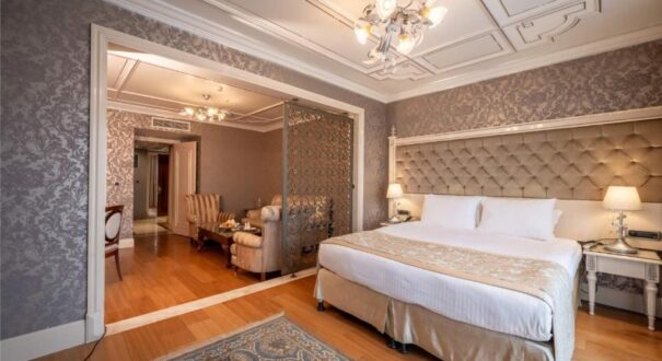 هتل سنترال پالاس در کمتر از 100 متری میدان تقسیم، قلب تپنده استانبول و در نزدیکی فروشگاههای خرده فروشی İstiklal Caddesi قرار دارد. اتاق های مجلل با طیف کاملی از امکانات سلامتی ارائه می دهد. منطقه خرید معروف نیسانتاسی 1.8 کیلومتر با این ملک فاصله دارد. تلفیق دکوراسیون عثمانی با لوازم مدرن، همه اتاق های The Central Palace دارای تهویه مطبوع هستند. آنها شامل یک قسمت نشیمن بزرگ و حمام لوکس با حمام آبگرم هستند. غذاهای لذیذ با تاکید بر مواد سالم در رستوران هتل سرو می شود. میهمانان می توانند در باشگاه با تکنولوژی پیشرفته تناسب اندام داشته باشند و با فعالیت های قلبی و تناسب اندام ورزش کنند. اسپای داخل خانه شامل سونا، گرداب و حمام تزئین شده با نقوش سنتی ترکی است. از تکسیم میتوانید به متروی استانبول و تراموای تاریخی که به تونل و پل گالاتا متصل میشود، بروید. در هتل سنترال پالاس وای فای رایگان و پارکینگ رایگان در دسترس است. مرکز همایش لطفی کردار، مرکز کنگره استانبول، سالن کنسرت Cemal Resit Rey و تئاتر Muhsin Ertugrul در فاصله 1.3 کیلومتری قرار دارند. مرکز خرید Cevahir 2.5 کیلومتر و مرکز خرید Demiroren 850 متر فاصله دارند. فرودگاه استانبول 49 کیلومتر با هتل فاصله دارد.