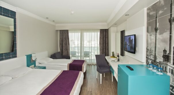 اتاق‌های هتل Crystal Waterworld Resort & Spa Antalya علاوه بر کف‌پوش چوبی با دکوراسیون مدرنی مزین شده‌اند و دارای امکاناتی نظیر تلویزیون ماهواره‌ای، تهویه مطبوع و مینی‌بار هستند. جالب است بدانید که تمامی اتاق‌ها دارای بالکن بوده و برخی از آن‌ها چشم‌اندازی رو به دریا دارند. برای تجربه لحظه‌های رمانتیک سعی کنید یکی از همین اتاق‌ها را رزرو کنید تا سفر شما به شهر آنتالیا به یاد ماندنی‌تر شود.در خصوص صبحانه، ناهار و شام باید بگوییم که وعده‌های غذایی در رستوران هتل کریستال به صورت سلف سرویس سرو می‌شود ولی با وجود رستوران‌های دیگر، این هتل سعی داشته تا پاسخگوی ذائقه تمامی گردشگران باشد. در این رستوران‌ها غذاهای ترکی، ایتالیایی، شرقی و خوراک‌های آمریکای جنوبی سرو می‌شود. ناگفته نماند که این هتل تا مرکز شهر بلک ۱۰ کیلومتر و تا فرودگاه آنتالیا ۴۵ کیلومتر فاصله دارد.