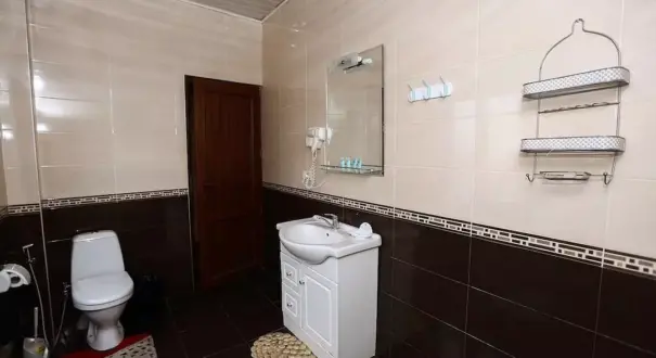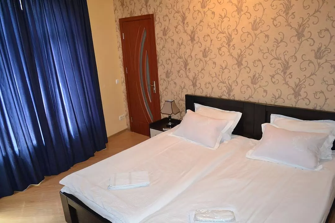 دستورالعمل ها هزینه های اضافی ممکن است اعمال شود و بسته به سیاست املاک متفاوت باشد شناسایی عکس صادر شده توسط دولت و کارت اعتباری، کارت بدهی یا سپرده نقدی ممکن است در چک در برای هزینه های اتفاقی مورد نیاز باشد درخواست های ویژه منوط به در دسترس بودن پس از چک در و ممکن است هزینه های اضافی متحمل؛ درخواست های ویژه را نمی توان تضمین کرد این ملک کارت های اعتباری، کارت های بدهی و پول نقد را می پذیرد ویژگی های ایمنی در این ملک شامل کپسول اتش نشانی و سیستم امنیتی است دستورالعمل های ویژه این ملک انتقال از فرودگاه را ارائه می دهد (ممکن است هزینه های اضافی اعمال شود). برای ترتیب دادن وانت، مهمانان باید 24 ساعت قبل از ورود با استفاده از اطلاعات تماس در تایید رزرو با ملک تماس بگیرند. کارکنان میز پذیرش در هنگام ورود به مهمانان خوش امد می گویند. هزینه های اختیاری هزینه صبحانه پخته شده: تقریبا GEL 10.00 برای هر نفر هزینه شاتل فرودگاه: GEL 40 در هر وسیله نقلیه (یک طرفه) هزینه حیوان خانگی: GEL 10 در هر حیوان خانگی، در هر شب هزینه تخت رولاوی: GEL 30.0 در هر شب لیست بالا ممکن است جامع نباشد. هزینه ها و سپرده ها ممکن است شامل مالیات نباشند و در معرض تغییر باشند. حیوانات خانگی مجاز