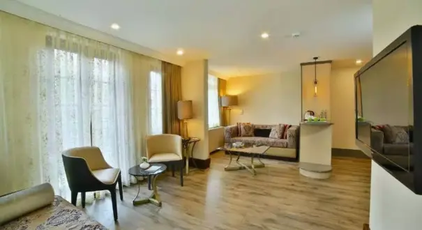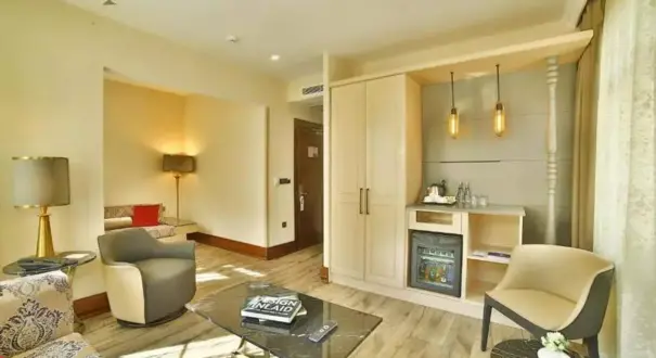 این هتل در ۷ طبقه ساخته شده است و ۱۱۷ اتاق و سوئیت دارد؛ دکوراسیون اتاقها سنتی اما همراه با امکانات مدرنی مثل اینترنت رایگان، تهویه مطبوع، تلویزیون صفحه تخت و چایساز یا قهوهساز است.