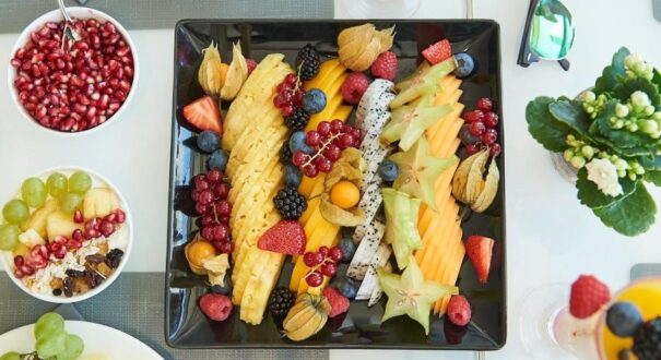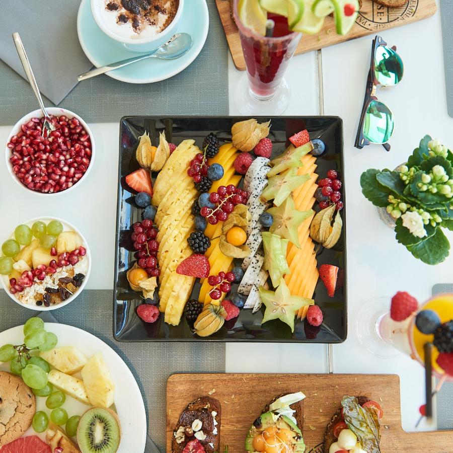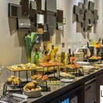 رستوران با منوی متنوع شامل غذاهای بین‌المللی و محلی و بار برای لذت بردن از نوشیدنی‌ها.
