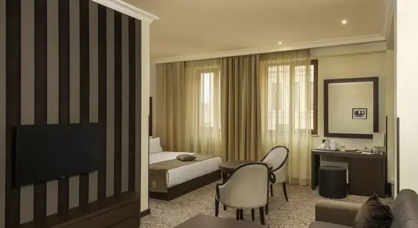 ۷۵ واحد اقامتی عایق صوتی این هتل دید رو به شهر و سیستم تهویه مطبوع دارند. ظرفیت اتاق‌ها و سوئیت‌های این مجموعه ۲ یا ۳ بزرگسال است و کف آن‌ها با موکت پوشیده شده است. در حمام اختصاصی آن‌ها علاوه بر لوازم بهداشتی رایگان، وان و جکوزی تعبیه شده است. بخش دیگری از امکانات و تجهیزات اتاق‌ها و سوئیت‌های این هتل شامل صندوق امانات، میز کار، تلویزیون صفحه‌تخت با کانال‌های ماهواره‌ای، مینی‌بار، چای‌ساز و قهوه‌ساز می‌شود. برخی واحدها بالکن نیز دارند.