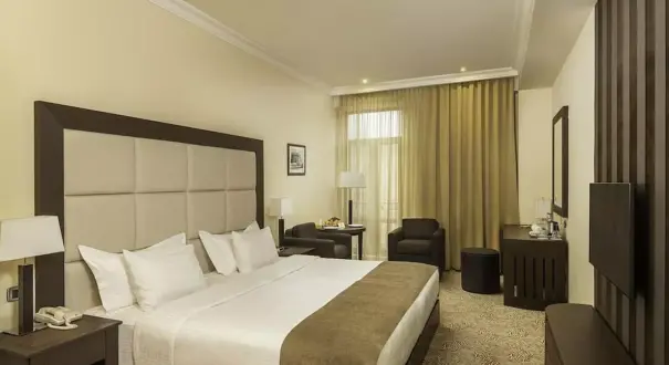 دستورالعمل ها هزینه های اضافی ممکن است اعمال شود و بسته به سیاست املاک متفاوت باشد شناسایی عکس صادر شده توسط دولت و کارت اعتباری، کارت بدهی یا سپرده نقدی ممکن است در چک در برای هزینه های اتفاقی مورد نیاز باشد درخواست های ویژه منوط به در دسترس بودن پس از چک در و ممکن است هزینه های اضافی متحمل؛ درخواست های ویژه را نمی توان تضمین کرد این ملک کارت های اعتباری را می پذیرد؛ نقد پذیرفته نمی شود ویژگی های ایمنی در این ملک شامل کپسول اتش نشانی، سیستم امنیتی و کیت کمک های اولیه است دستورالعمل های ویژه کارکنان میز پذیرش در هنگام ورود به مهمانان خوش امد می گویند. هزینه های اختیاری هزینه صبحانه بوفه: تقریبا AMD 8500 برای بزرگسالان و AMD 4250 برای کودکان هزینه شاتل فرودگاه: AMD 15000 در هر وسیله نقلیه (یک طرفه، حداکثر اشغال 3) هزینه تخت رولاوی: AMD 17000.0 در روز لیست بالا ممکن است جامع نباشد. هزینه ها و سپرده ها ممکن است شامل مالیات نباشند و در معرض تغییر باشند. حیوانات خانگی مجاز نیستند