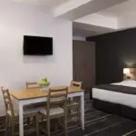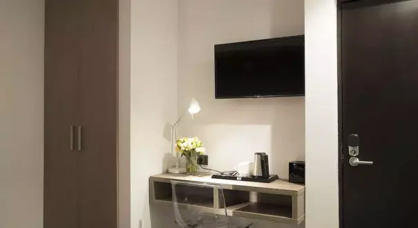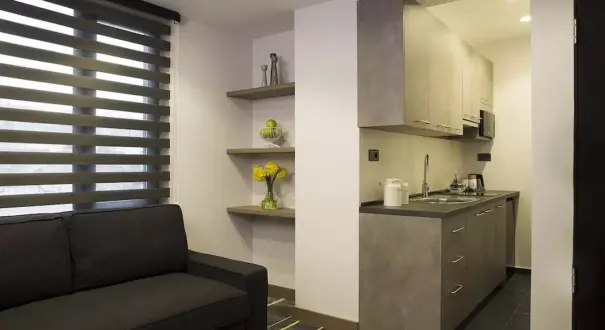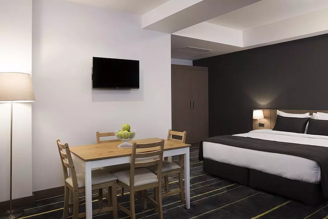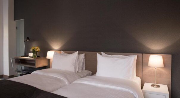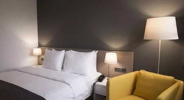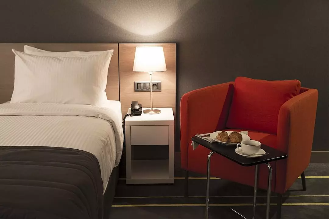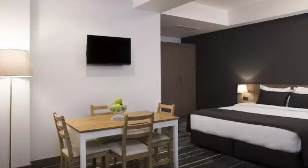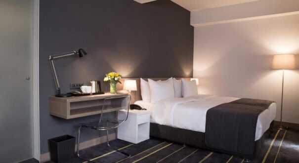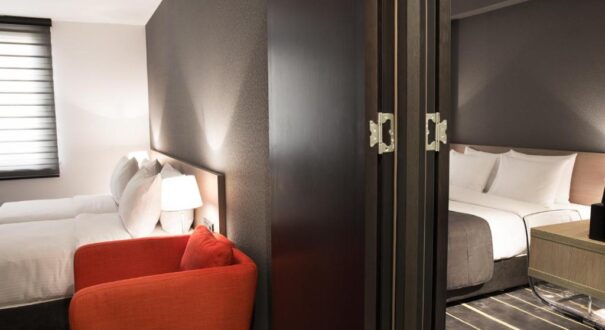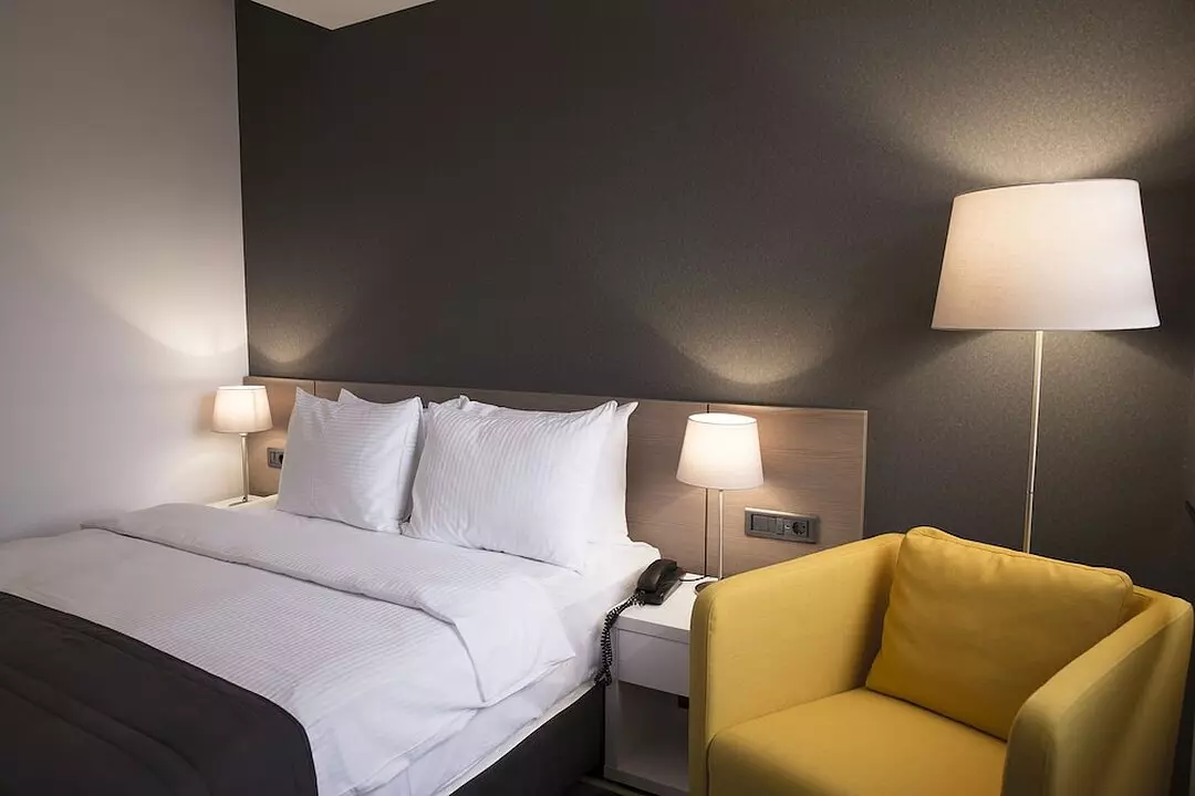 این هتل سه نوع سویت و اتاق دارد که میتوان برای آنها درخواست تخت اضافی هم کرد. چشمانداز این اتاقها رو به شهر یا محوطه هتل است و سیگار کشیدن در آنها ممنوع است. اتاقها به امکاناتی مثل مینیبار، تلویزیون، اینترنت، سیستم تهویه مطبوع و دیوارهای عایق صدا مجهز شدهاند و برای حمام آنها هم دوش، سرویس بهداشتی فرنگی و لوازم بهداشتی در نظر گرفته شده است.