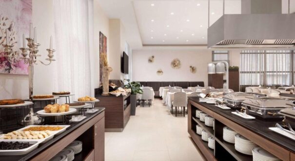 صبحانه مجموعه هر روز صبح در سبک کانتیننتال با منوی بوفه سرو میشود. این هتل با دو رستوران و منوی غذاهای آمریکایی و بینالمللی در وعدههای صبحانه، ناهار و شام از مهمانان پذیرایی میکند.