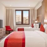 این مجموعه دارای ۱۴ طبقه و ۲۰۲ واحد اقامتی است که بهصورت مدرن طراحی شدهاند و دید رو به شهر دارند. اتاقها و سوئیتهای این مجموعه دارای ظرفیت ۲ الی ۴ نفره هستند و امکان سیگار کشیدن در آنها وجود ندارد. بعضی از تجهیزات و امکانات واحدهای اقامتی این هتل شامل سیستم تهویه مطبوع، آشپزخانه، تلویزیون، چایساز یا قهوهساز، صندوق امانات، امکان دسترسی با ویلچر، مبلمان، لوازم بهداشتی رایگان، مینیبار و یخچال میشود.